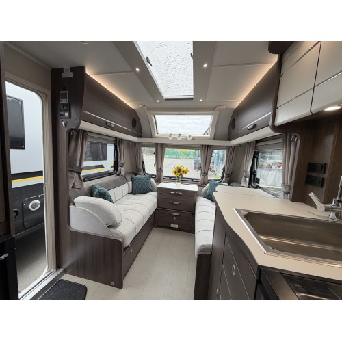- Fully equipped kitchen featuring quality appliances including a Dometic Series 10 fridge and microwave, oven and hob.