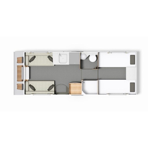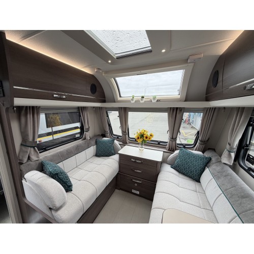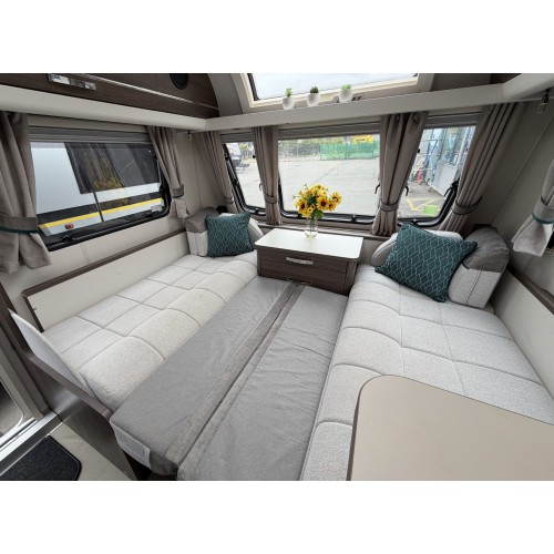 - Spacious and flexible 4-berth layout with fixed twin single beds and a front lounge that easily converts to a double bed.