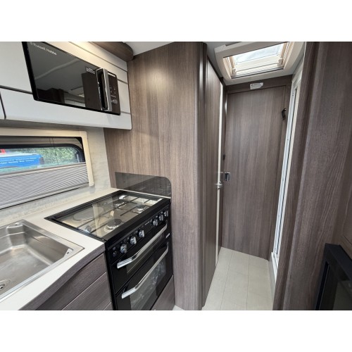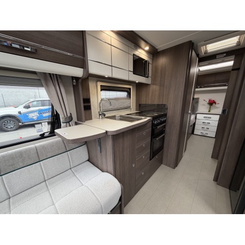 - Fully equipped kitchen featuring quality appliances including a Dometic Series 10 fridge and microwave, oven and hob.
